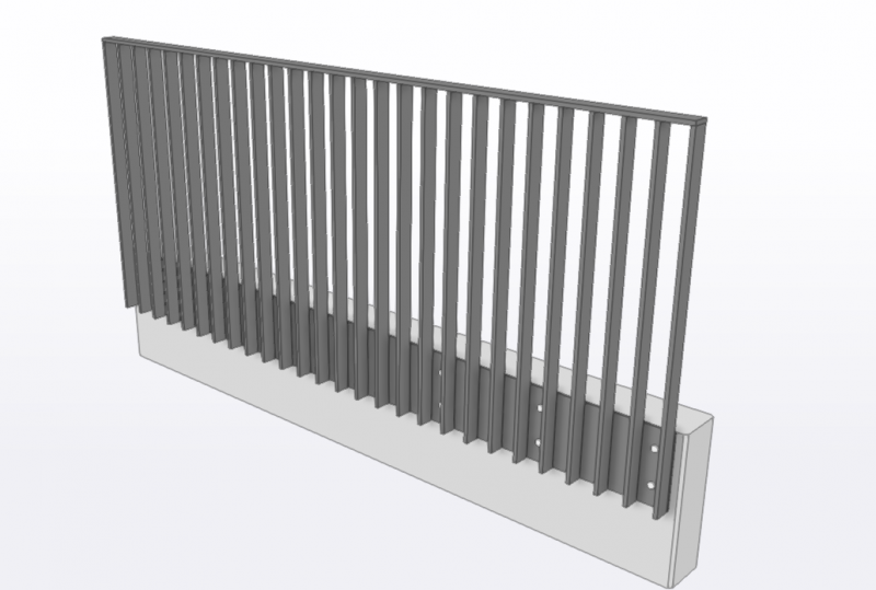 Fully compliant with AS/NZS 1170.1 (Class C3 crowd loading), this system features slim 65×16 mm vertical blades at 110 mm max centres, a strong 70×16 mm clip-in top rail, and a robust 300×10 mm aluminium side fixing plate.